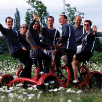 Einer lenkt, die anderen müssen ihm vertrauen. Dazu kommt die Sitzhaltung quer oder gar rückwärts zur Fahrtrichtung: Was im ersten Moment ungewohnt ist, wird nach kurzer Zeit eine echte Gaudi. Der Fuhrpark von GeccoTours ist mit mehreren GeccoMobilen bzw. Conferencebikes ausgestattet. Dies ermöglicht auch größeren Gruppen, mit einem Bus anzureisen und trotzdem den Fahrspass gemeinsam und gleichzeitig zu genießen. Kommen Sie und erleben Sie das einzigartige Fahrrad für jeweils bis zu 7 Personen selbst. Wir haben auch diverse Tourenangebote für Sie zusammen gestellt. Durchstöbern Sie unsere Website und Sie finden auf jeden Fall das passende Event. |