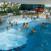 Erlebnisbad - Wasserwelt Gönnen Sie sich Entspannung und Erholung für Körper und Geist in unserem Bad. Die größte Wassererlebniswelt der Pfalz zählt zu den führenden Wellnesseinrichtungen in der Bundesrepublik und wurde von Testinstituten zu einem der besten Freizeitbäder in Deutschland gekürt. La Ola-Riesenrutsche Garantiert viel Spaß erleben Sie in der Riesenrutsche "Black Hole", die ihren Namen zu Recht trägt. Ein großer Teil der Rutsche ist verdunkelt. Länge: 100 Meter Höhe: 13 Meter La Ola-Wellenbecken Genießen Sie die Brandung des großzügigen La Ola-Wellenbeckens. Jede halbe Stunde erleben Sie den Ozean live. Es sind 5 verschiedene Wellenarten möglich - äußern Sie Ihren Wunsch einfach beim Schwimmmeister. Besonders viel Spaß haben Sie im Wellenkanal, den Sie auf über ein Meter hohen Wellen durchreiten können. La Ola-Whirlpools Steigen Sie ein in das wohltuende Sprudelbad. Eine Wassertemperatur von 37°C verspricht Erholung und Entspannung. Whirlpools finden Sie im Freizeitbereich und im Saunabereich. La Ola-Kleinkind-Badebereich Für jedes Alter etwas dabei. Der Kleinkind-Badebereich, umgeben von Palmen, wartet mit einer Wassertemperatur von 32°C auf die Kleinen. Weiterhin gibt`s eine eigene "Dino-Rutsche", Wasserspiele, sowie einen Wickeltisch und Stromanschluss (für Babyfläschchen). La Ola Außen-Thermalbecken Gerade in der kalten Jahreszeit ein besonderes Vergnügen: Planschen im Freien bei 32° C Wassertemperatur. Bodensprudler und Massagedüsen können auf Wunsch durch den Schwimmmeister geschaltet werden. Entspannen Sie sich auf der großzügigen Liegewiese, sowie auf der Sonnenterrasse mit Liegestühlen. Außerdem gibt`s eine Tischtennisplatte, die natürlich kostenlos benutzt werden darf. La Ola-Sportbecken/Nichtschwimmer Auch sportliche Besucher kommen im La Ola auf ihre Kosten. Ein 25-Meter-Sportbecken mit 3-Meter-Turm und 1-Meter-Brett bringen Schwimmspaß. Ziehen Sie Ihre Bahnen. Wassertemperatur: 28° C. Daneben steht noch ein mit 32° C temperiertes Lehrschwimmbecken zur Verfügung. Vitalgarten Nach den Grundsätzen der fernöstlichen Feng Shui-Lehre wurde im Außenbereich des Bades ein Vitalgarten mit Energie- und Ruhebereichen angelegt. Sauna-Sonnenterrasse Die Stahl-Holz-Konstruktion der Sauna-Sonnenterrasse bietet Saunagäste im Sommer die Möglichkeit sich nahtlos zu bräunen. Blickpunkt der Sauna-Sonnenterrasse bildet ein nach Feng-Shui Kriterien gestalteter Brunnenbereich. LA OLA-Feng-Shui Saunaruheraum Das besondere Ambiente des Saunaruheraumes nimmt der Besucher sofort wahr: Neben einer harmonischen und auf die Grundsätze des Feng-Shui abgestimmten Farbgestaltung nach den vier Elementen Wasser, Erde, Feuer, Luft, wurde ebenso darauf geachtet, dass der Raum den Besucher mit seinen Einrichtungen zum Wohlfühlen einlädt. |