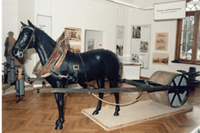 Aspekten.Text- und Bildtafeln, Modelle und Nachbauten in Originalgröße oder herausragende Exponate, wie ein Altgermanischer Bohlenweg aus der Zeit um 800 v.Chr., vermitteln dem Besucher einen Überblick über verschiedene historische Zeitstellungen der Entwicklung von Straßen, ihrer Bauweisen und der dazu gehörigen Baumaschinen. |